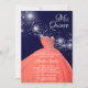 Um vestido coral profundo sobre um fundo de céu noturno estrelado, estes convites de festa de aniversário de Quinceañera são perfeitos para o 15º aniversário de qualquer princesa. Para papéis mais grossos, considere o Papel Matte. Disponível em vestidos CORAL, VERMELHO e BRANCO com e sem a Torre Eiffel. Itens COINCIDENTES em nossa loja.