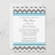 Convites personalizados do chá de fraldas no azul de pavão elegante e moderno de turquesa, em cinzas de carvão vegetal escuras e em teste padrão de ziguezagues da viga do divertimento do branco. Customizável com seu texto, contacte-nos para pedir uma mudança da cor.