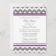 Convites personalizados do chá de fraldas em cinzas da ameixa escura elegante e moderna de carvão vegetal e no teste padrão de ziguezagues roxos, escuros da viga do divertimento do branco. Customizável com seu texto, contacte-nos para pedir uma mudança da cor.