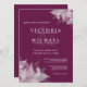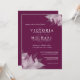 As flores brancas abstratas do gardenia com folhas wispy e redemoinhos lunáticos limitam este grupo bonito do convite do casamento.  Aperfeiçoe para casamentos do jardim em toda a estação -- mude simplesmente a cor do fundo para o primavera, o verão, o outono, a queda, e o inverno.  A tipografia semi-formal elegante do vintage é certa satisfazer a noiva tradicional, mas um respingo da denominação na moda faz-lhe o contemporâneo bastante para casais modernos.  Elegância simples mas à moda a discontos do negócio e preços disponíveis para noivas frugais em um orçamento. Mostrado com fundo roxo do vinho do arando/Bordéus no estoque de papel básico -- ou elevação ao feltro superior da qualidade, ao linho, ao reciclado, e às opções de papel metálicas. Personalize-a para mudar as cores e os estilos da pia batismal. Contacte-nos por favor se você gostaria deste design alterado para combinar seu tema da cor. Este modelo fácil de usar pode igualmente ser personalizado para toda a ocasião especial tal como anúncios do chá de panela, do noivado e do casamento. Contacte-nos por favor para o auxílio se você precisa a ajuda de criar seus próprios convites um--um-amáveis originais.  TAMANHO DO CARTÃO: 5,5 x 7,5 polegadas -- outros estilos dos tamanhos, do cor, e os de papel disponíveis.
