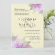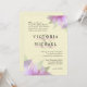 As flores roxas da aguarela da lavanda abstrata com as folhas wispy do verde e redemoinhos lunáticos limitam este convite bonito do casamento ajustado mostrado no fundo do amarelo do marfim. Aperfeiçoe para casamentos do jardim e locais de encontro tropicais -- mude simplesmente a cor do fundo para as estações, o primavera, o verão, o outono, ou os casamentos no inverno. A caligrafia escrita à mão do roteiro do estilo formal elegante do Victorian do vintage é certa satisfazer a noiva tradicional, mas um respingo da cor faz na moda bastante para casais modernos. Elegância simples mas à moda a discontos do negócio e preços disponíveis para noivas frugais em um orçamento. Mostrado no estoque de papel de linho -- também disponível no feltro básico, superior da qualidade, no linho, no reciclado, e em opções metálicas. Personalize-a para mudar as cores e os estilos da pia batismal. Contacte-nos por favor se você gostaria deste design alterado para combinar seu tema nupcial da cor do partido. Este modelo fácil de usar pode igualmente ser personalizado para toda a ocasião especial tal como anúncios do noivado e do casamento. Contacte-nos por favor para o auxílio se você precisa a ajuda de criar seu próprio cartão um--um-amável original. TAMANHO DO CARTÃO: 5,5 x 7,5 polegadas -- outros estilos dos tamanhos, do cor, e os de papel disponíveis.
