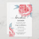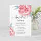 Convites de chá de panela apresentam lindas flores de aquarela em rosa macio com folhas esmeraldas.