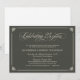 Convites formais para bodas de prata com um design de texto cinza escuro e branco. O texto diz "Celebrando 25 anos".
