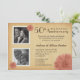 Belos Convites de festas do 50º aniversário de Casamento com inserções enquadradas para duas fotos em vintage simularam o fundo de pergaminho do ouro, sotaques de margarida do gerber rústico e texto retrô. Perfeito para jantas elegantes, mas casuais e informais, almoço, coquetel e festas de jardim. Carregue suas fotos e adicione os nomes, a data e os detalhes. Altere o texto para personalizá-lo facilmente para outras ocasiões especiais e celebrações felizes de marcos — 25, 30, 40º, 45º, 60º, 65º, festas de surpresa 70, casamentos, salvamento de data ou qualquer evento exclusivo. Tamanho mostrado: 5,5 x 7,5. Clique em Personalizar para alterar o tamanho, as fontes e a escolha do papel.