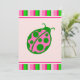Uma ladybug rosa e verde é o ponto focal deste convite! Use estes convites para uma festa de aniversário, festa de aniversário, festa, casa aberta, festa de piscina, piquenique, chá de fraldas, recepção, festa de jardim, chá, dezesseis doces, etc... Personalize-se para atender às suas necessidades. A design é de uma ilustração original.