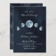 Lindos luas de eclipse total e estrelas em aquarela celestial para formatura, noivado ou convites de casamento. Ótimo para uma noite ao luar. Fundo azul escuro de aquarela com estrelas espalhadas.