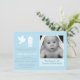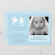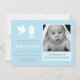 Um convite azul pastel moderno, à moda e minimalista do batismo ou do baptismo em honra do bebé. Elementos-chave do baptismo das características de design como a pomba, a vela com uma cruz e um espaço para a personalização da foto do pouco uma. No reverso a página é um teste padrão de ziguezague azul e branco pastel da viga. Personalize facilmente com detalhes do evento.