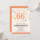 Convites de Aniversário Simples de 66 anos Modernos com Confetes caligrafia tipografia marco clássico elegante colorido feminino