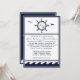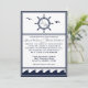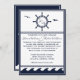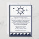 Convites náuticos do casamento dos azuis marinhos e do branco - o design dianteiro é compreendido da roda de um navio, gaivotas, corda, e nas ondas de oceano inferiores. O design, o texto, e os esboços nos azuis marinhos com um fundo branco. Na parte traseira é a roda de um navio maior com as ondas na parte inferior que são brancas sobre um fundo dos azuis marinhos. O papel é ajustado à revelia ao estoque básico do convite, mas podido ser mudado clicando "escolhe seu estilo" que usa então o de papel deixa cair para baixo a picareta uma da caixa das opções. Cada convite vem com um envelope branco. Para mudar a pia batismal, o tamanho de pia batismal, ou a cor da pia batismal, clicam o botão da personalização abaixo do convite náutico do casamento. Nota você pode ter que personalizá-la se determinado fraseio é demasiado longo e assim cabe o design melhor. Se o seu satisfeito com a instalação da pia batismal, você pode usar a característica do personalizamento para mudar a informação da demonstração a seus detalhes pessoais. Clicar as imagens pequenas da parte dianteira/traseiro do cartão com mudança a esse lado assim que a ele pode ser alterado. Quando feita a verificação a informação que você se aplicou está correta e isso você não tem nenhum erro de soletração em ambos os lados do cartão.
