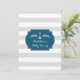 Os convites personalizados do chá de fraldas com vintage listram o teste padrão, quadro rústico e detalhes náuticos em azuis marinhos escuros, luz - cinza e branco. Customizável com seu texto.