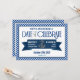 Convites Náuticos marinhos Azuis e Brancos—correspondem ao RSVP e mais são encontrados abaixo nesta página. Completar o tema do seu casamento náutico com estes convites que apresentam listras azuis e brancas, uma caixa de texto decorativa azul marinho com uma âncora de cinza rico e uma inscrição na moda que diz, "Nós ancoramos uma data para celebrar." "Estes convites para casamento são feitos em estoque de cartão básico de alta qualidade. no entanto, você pode atualizar para vários outros tipos à direita acima. Cada convite vem com um envelope branco.