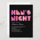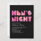 Convites de festas noturnos de Hen moderno com um design preto, rosa-quente, azul, amarelo e vermelho. Para um nadador extra escolha papel metálico prateado.