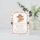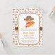 Yeehaw! Este convite tem um bebé bonito vestir um chapéu de vaqueiro com ícone da estrela e afagar um brinquedo alaranjado ingualmente adorável do travesseiro do ralo do cavalo do tan do marrom. Fundo do teste padrão branco e marrom do animal do impressão da pele da vaca. Um golpe, convite bonito a convida convidados para esses temas ocidentais e de Texas do chá de fraldas! Personalize com detalhes do partido entre o espaço disponível.