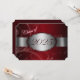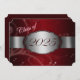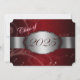 Convite à graduação de vermelho e prata com floral vermelho claro e escuro e uma fita prateada passando mostrando o ano de graduação. A parte traseira da placa é vermelha com fonte prateada clara para as pessoas preencherem os anúncios de graduação.