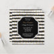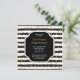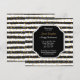 Convite de festas de aposentadoria simples e moderno em preto e branco listrado com bolinhas ouros. Design correspondente na placa de volta. Todo o texto está pronto para você personalizar com suas informações.
