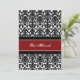 convites de festas de Bat Mitzvah personalizados em elegante cor damasco floral vermelha, preta e branca. Adicione seu nome e detalhes da festa para um convite de festas exclusivo e na moda Bat Mitzvah.
