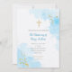 Batismo simples e elegante / convite batizante em azul-água e borrifador de ouro.