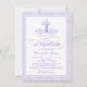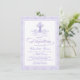 Meninas roxas convidam batismo com cruz de pérolas roxas e roteiro elegante em um bonito fundo de damasco de lavanda. Este elegante convite para batismo roxo e damasco roxo de lavanda é facilmente personalizado para o seu evento simplesmente adicionando os seus detalhes no estilo de fonte e na cor e na redação da sua escolha.