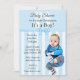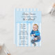 Um bebê bonito, azul, listras brancas e pegadas de bebê convite para chá de fraldas. Basta adicionar as informações do seu chá de fraldas na área de personalização