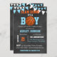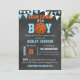 Um tema de basquete único incrível, cartões de convite para vitrines. Fundo de quadro com basquete SLAM DUNK! É um menino. Cor azul e branca. Placas de modelo editáveis para que você possa adicionar suas informações. Obtenha autocolantes para os seus favores de presentes.