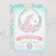 Chamadas de chuva de bebês de unicórnio azul-rosa e lacrimogêneo, com bonito cor d'água, unicórnio e flores em um belo fundo azul-lacrimogêneo ombre. Estes convites para o chá de bebê unicórnio são facilmente personalizados para o seu evento simplesmente adicionando os seus detalhes.