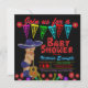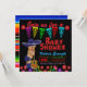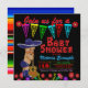 Chá de fraldas Fiesta convidada com um bebê fofo vestindo um sombrero azul escuro e guitarra em um festivo fundo de fiesta floral e serape. Esses adoráveis convites para o chá de bebê do Fiesta mexicano são facilmente personalizados para seu evento simplesmente adicionando seus detalhes.