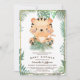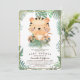 Convite para Chás de fraldas Super Bonitos Tiger - Prepare-se porque um pequeno tigre está a caminho. Comece a comemorar do jeito certo com nosso convite para chá de fraldas de tigre muito bonito. Apresentando um pequeno tigre de bebê cercado por novas folhas verdes da selva tropical. A parte traseira da carta tem uma textura de cartolina falso com um sutil padrão verde de folha. Perfeito para um convite de chá de fraldas. Vai buscar-lhes tigre! Raio!