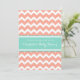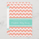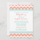 Convites personalizados para bebês em elegantes e modernos turquesas brilhantes aqua azul-claro, cor de laranja pêssego e padrão de chevron zigzags branco. Personalizável com seu texto, entre em contato conosco para solicitar uma alteração de cor.