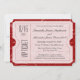 Convidações de ingresso, uma forma única e na moda para celebrar seu dia especial de casamento. Design elegante com fundo vermelho de espiral e design de tíquete branco. Personalizar online com as suas informações