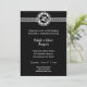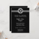 Convites Elegantes de Bodas de Prata Preto e Prata para 25 Anos de Casamento. O convite tem um emblema prateado de 25 anos e o fundo preto faz as letras prateadas se destacarem. Adicione os detalhes da sua festa.