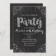 Convites para Bolsas mensageifestas de aniversario elegante em preto e prata. Personalize como quiser.