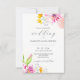 Economize no papel e dinheiro com estes convites para casamento cor de água rosa floral e laranja com código QR. Um design simples, mas clássico, este convite apresenta tipografia caligráfica com letra clássica. Um fardo de florais de aquarela em tons de pêssego, rosa e laranja, seus detalhes personalizados. Essas cartas são revertidas para uma cor rosa correspondente ao seu código QR de casamento e espaço para detalhes adicionais. Use os campos modelo para adicionar seu texto personalizado. Encomendar cartões impressos ou convites para casamento imprimíveis. Uma escolha sustentável, mas barato, para casamentos de boho. Para ver a suíte de papelaria de casamento correspondente, visite www.zazzle.com/dotellabelle Flores de aquarela únicas e design por Victoria Grigaliunas do Do Tell A Belle.