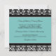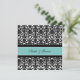 Cartões de convite em elegante cor damasco floral azul-turquesa, preto-e-branco clássico. Personalize estes convites com os detalhes do seu casamento. Disponível em produtos correspondentes para todas as suas necessidades de casamento.