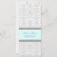Cartões de convite em azul-turquesa elegante e romântico, azul-turquesa, cinza e cor damasco floral clássica branca. Personalize estes convites com os detalhes do seu casamento. Disponível em produtos correspondentes para todas as suas necessidades de casamento.