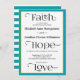 Conforme adaptado de 1 Corinthians 13, este simples convite de casamento cristão Bimini Blue e Verde limão Floral Faith, Hope e Love é uma escolha ideal para a noiva cristã moderna. Fechado com um pequeno coração vermelho. Veja toda a suíte de opções de convite e acessório cristão na loja Zazzle, o Graphic Suite.