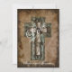 Rustic Country Western Cross Wedding Convites com um design de cruz angustiado único, com um antigo fundo castanho verde e um design de cruz de tartaruga teal. Um lado diz "Amor" e os nomes da noiva e do noivo. O outro lado tem um antigo design de papel rolante sobre a cruz que desbotou no fundo, para que você possa ler o convite de casamento mais fácil. Basta adicionar seu texto à modelo para fazer convites para o seu próprio país.