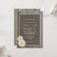 Convites de casamento russos com uma design de margarida branca num fundo de madeira de celeiro velho. Consiga os cartões de resposta de casamento russos.