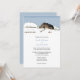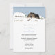 Convites de casamento de celeiro de inverno com um celeiro elegante numa cena de inverno de neve. Lindos flocos de neve caindo em um céu azul macio sobre colinas e pinheiros. Perfeito para seu casamento no inverno rústico. Obtenha os cartões de resposta e o correio correspondentes.