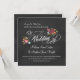 Convite para casamento do Conselho Rustic Floral Chalk — buquê charmoso do país de rosa abstrato, margaridas e flores silvestres caprichosas com caligrafia clássica e de estilo na moda vintage na lousa+cinza faz um convite para casamento preto e branco, com um toque de cor. Adicione seus nomes e informações de casamento neste modelo fácil de usar. A tipografia retrorreflectora em estilo misto e letterpress elegante com script de haste de rico é adequada para o tema formal ou semiformal. Perfeito para casamentos modernos modernos com um toque clássico mas casual de sofisticado charme romântico sul para a noiva e noivo tradicionais. Pacote de casamento completo, conjuntos de papelaria de noiva, estoque de correio e kit de acessórios de correio disponível mediante solicitação. Entre em contato conosco para obter ajuda com a personalização se precisar de mais espaço para seus detalhes de casamento. Tema de Casamento Botânico © 2013