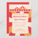 Convites de casamento de circo maravilhosos e divertidos com as cores vermelho e laranja. O topo do convite tem um conjunto de tendas de circo. É um convite muito divertido e caprichoso que é excelente para um tema de circo ou carnaval. Envie-me um e-mail para jen@designsbynyxxie.com se tiver alguma dúvida.