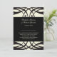 Convites para Casamento com Deco de Arte Elegante com espaço para escrever nomes de hóspedes numa caneta de prata ou ouro metálica. Elke Clarke© para MonogramasGallery© Font e conjunto de cores de fundo para o branco de casca de ovo e impresso em papel branco. Outras cores disponíveis. Use "personalizá-lo" no texto do espaço ou faça outros ajustes para personalizar ou personalizar. Um padrão de espiral elegante na frente e sua noiva e monogramas de noivo nas costas.