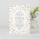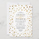 Convites para Casamento de Folhas de Confetti Brancas e Douradas - apresenta um fundo branco com uma folha fina de brilho dourado para decoração elegante. Este design também apresenta fontes modernas e elegantes para o layout de texto.