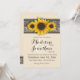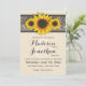 Modelo de Convite para Casamento de Girassol em Rústico País. Apenas mude o texto para torná-lo seu. O topo apresenta uma bela coleção de designs de girassol desenhados à mão num padrão de borda de renda em estilo vintage. O plano de fundo do convite é uma cor bege claro cremosa, mas pode ser alterada para qualquer cor de sua escolha. Use o botão personalizar para alterar a cor do plano de fundo. Impresso na sua escolha de papel.