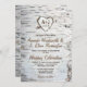 Country Rustic Birch Tree Latido Wedding Invtions - mostra um latido de pássaro impresso na frente e atrás com um coração esculpido arranhado que você pode personalizar as iniciais para você e embaixo dela, sua data de casamento.