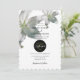 Este design apresenta flores brancas de lírio. Os belos lírios brancos elegantes complementam a elegante forma do círculo preto moderno que circunda a data do casamento. Uma fusão perfeita de modernos e quentes com tons verdes. Verde, preto e branco são uma combinação perfeita para um elegante casamento temido de jardim floral. Design de convite de casamento único com elementos modernos. Também estão disponíveis itens de papelaria de casamento e outros formatos de convite de casamento.