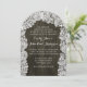 Madeira russa de celeiro escuro e convites para casamentos de rendas. Perfeito para o Tema de Casamento da Feira ou Floresta