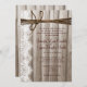Este convite de casamento rústico é perfeito para qualquer casamento no interior oeste. Ele apresenta um fundo de design de madeira impresso em cada país rústico em ambos os lados do convite. O convite tem um embelezamento de local impresso na lateral. O topo tem um ornamento impresso de fio. A madeira, o rendas e o fio são apenas designs impressos. Não é madeira, renda ou fio.