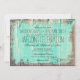 Convites De Casamento Para O País Rustic Barn Wood Aqua Turquoise. Estes convites para casamento aflitos são perfeitos para um casamento de praia rustica ou um casamento de campo rústico com as cores do casamento de Ave. O fundo é um design de madeira desbotada, com cor em relevo de grunge aqua.