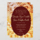 Este convite de casamento é perfeito para qualquer casamento no campo. Apresenta um fundo florescente rústico em ambos os lados do convite. Há um óvulo vermelho de marrom tachado no meio no qual a inscrição está ligada.