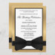 Estes convites formais clássicos para casamento são impressos com um design de ouro falso e fundo preto e branco. Estas não são folhas de ouro verdadeiras, apenas impressas para se parecerem douradas, de modo que são mais baratos do que os convites de folhas de alumínio propriamente ditos.